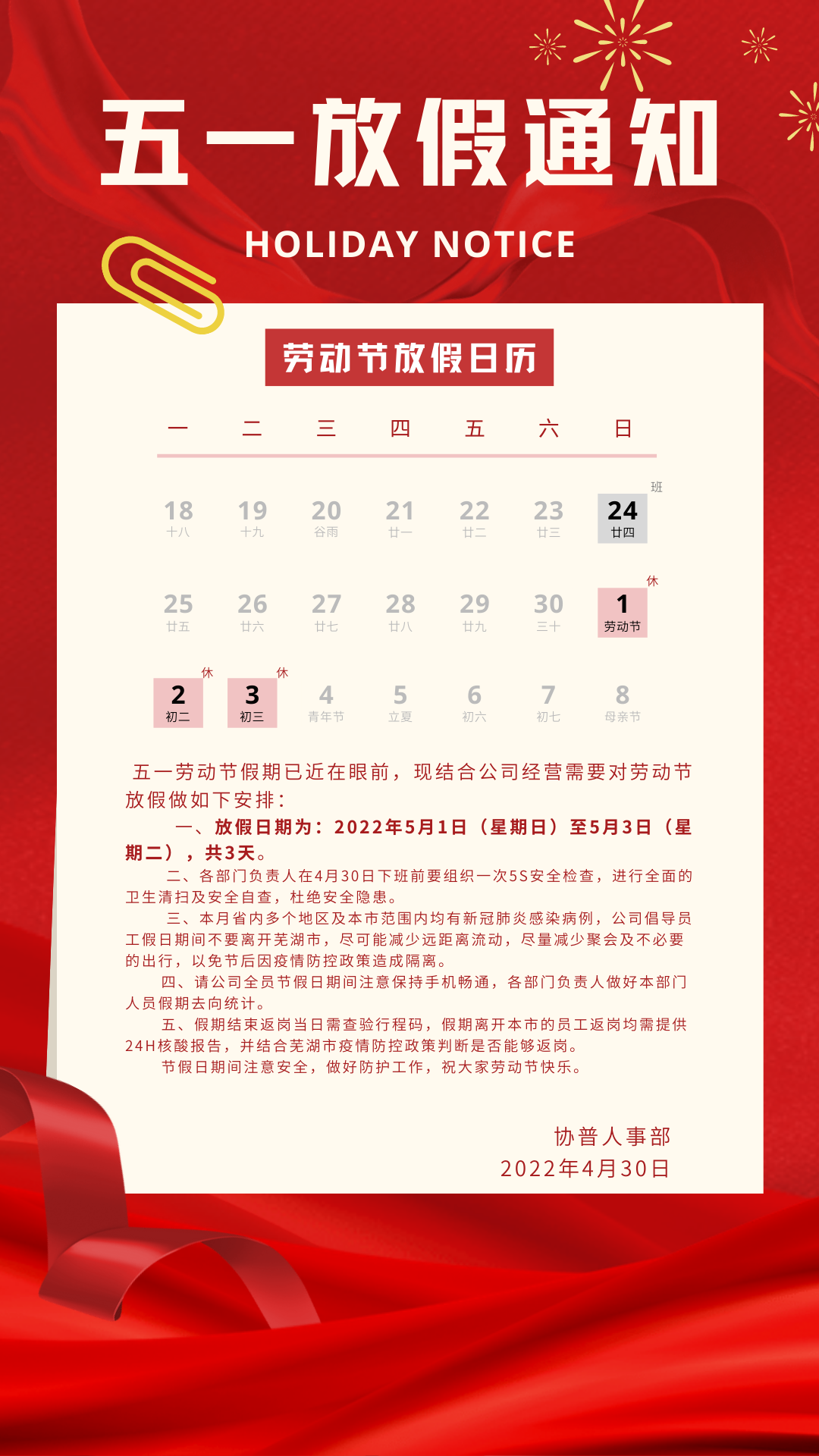 ,注意自身安全,過一個平安的勞動節(jié)