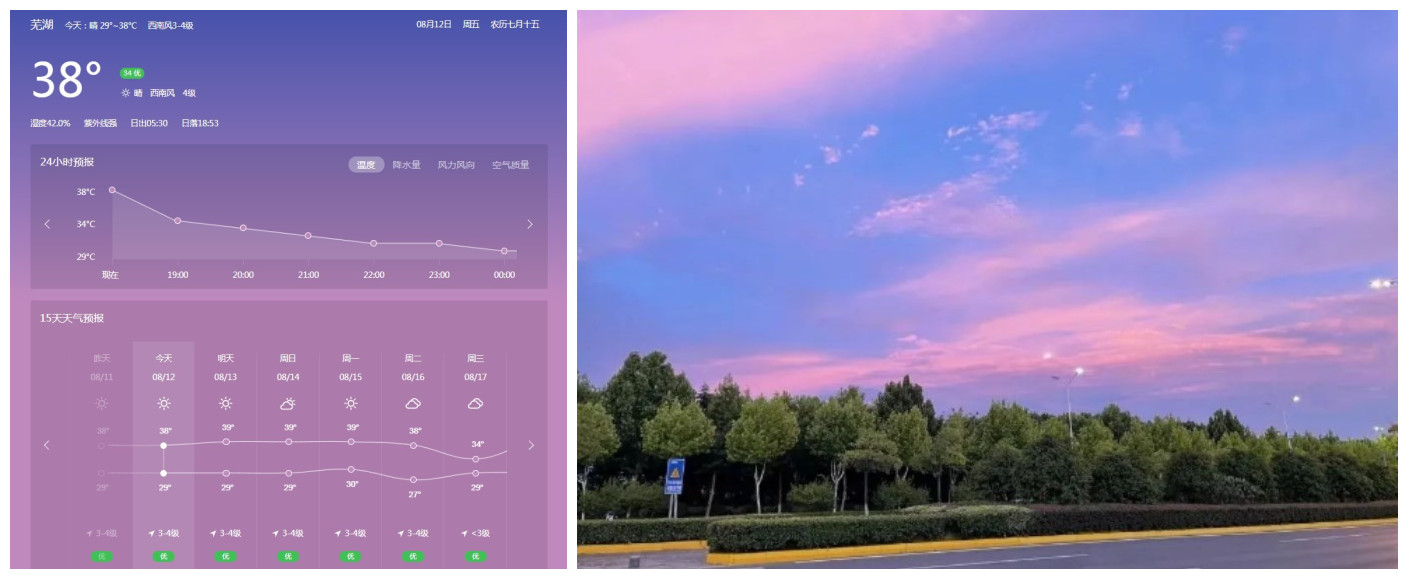 另外 ,最近的晚霞絢麗多彩 ,大家下班路上或是飯后散步可以駐足欣賞,酷暑炎熱中也有不可錯(cuò)失的驚喜哦 。