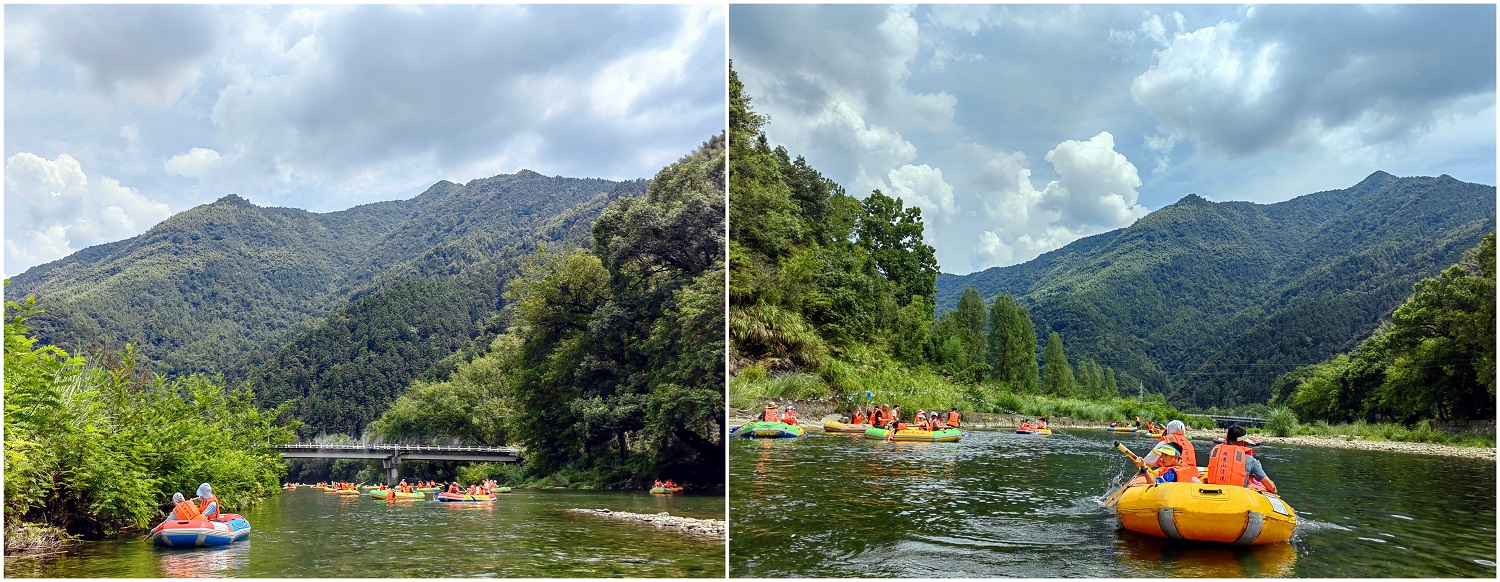 此次行程兩天一夜,在導(dǎo)游的帶領(lǐng)之下,我們首先來(lái)到石臺(tái)縣大演鄉(xiāng)剡溪村的西黃山漂流景區(qū)。下榻之時(shí),正值正午時(shí)分,景點(diǎn)兩岸青山疊嶂、風(fēng)光旖旎、草木蔥蘢、景色怡人。協(xié)普家人們換好服裝,穿上救生衣,在工作人員的協(xié)助之下,或一家?guī)卓?div id="d48novz" class="flower left">
