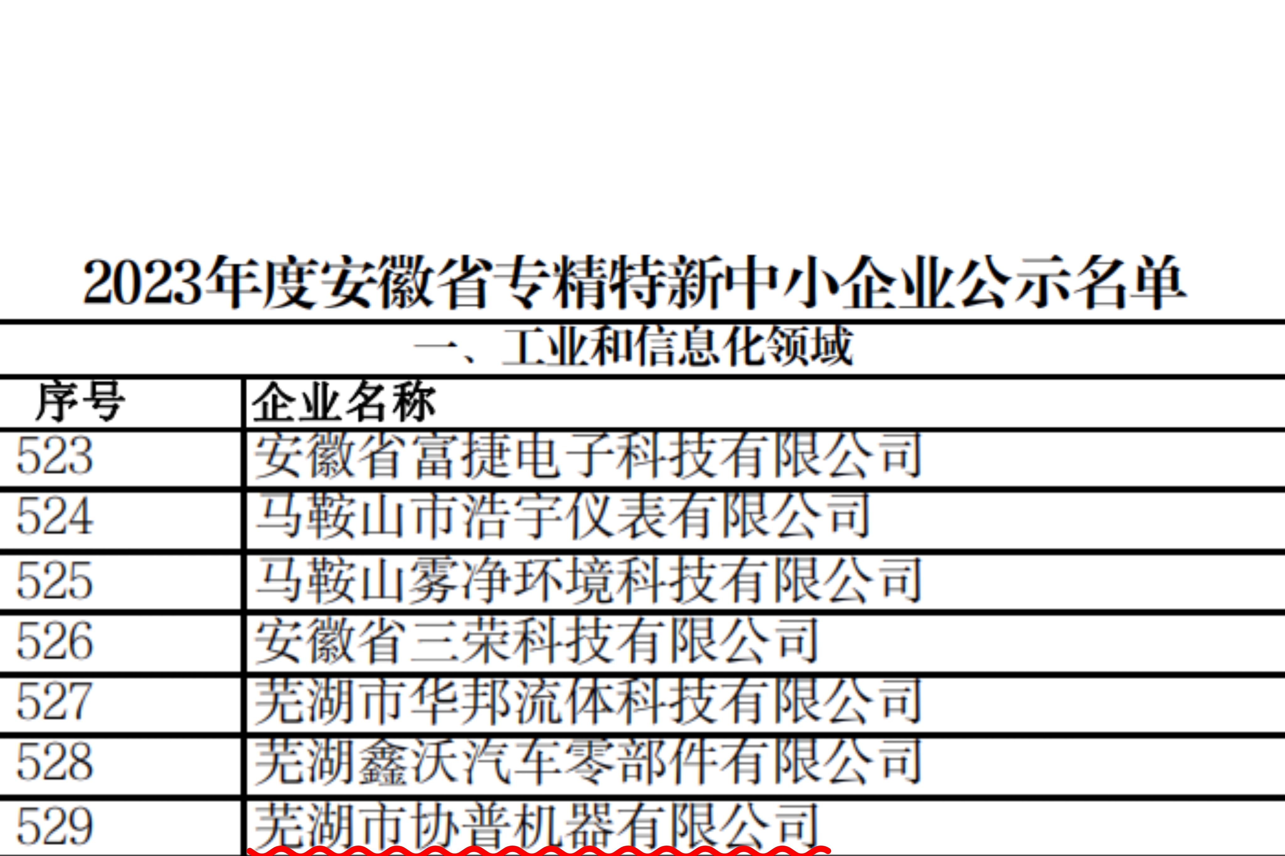 關(guān)于2023年度安徽省“專精特新”中小企業(yè)的名單 ,